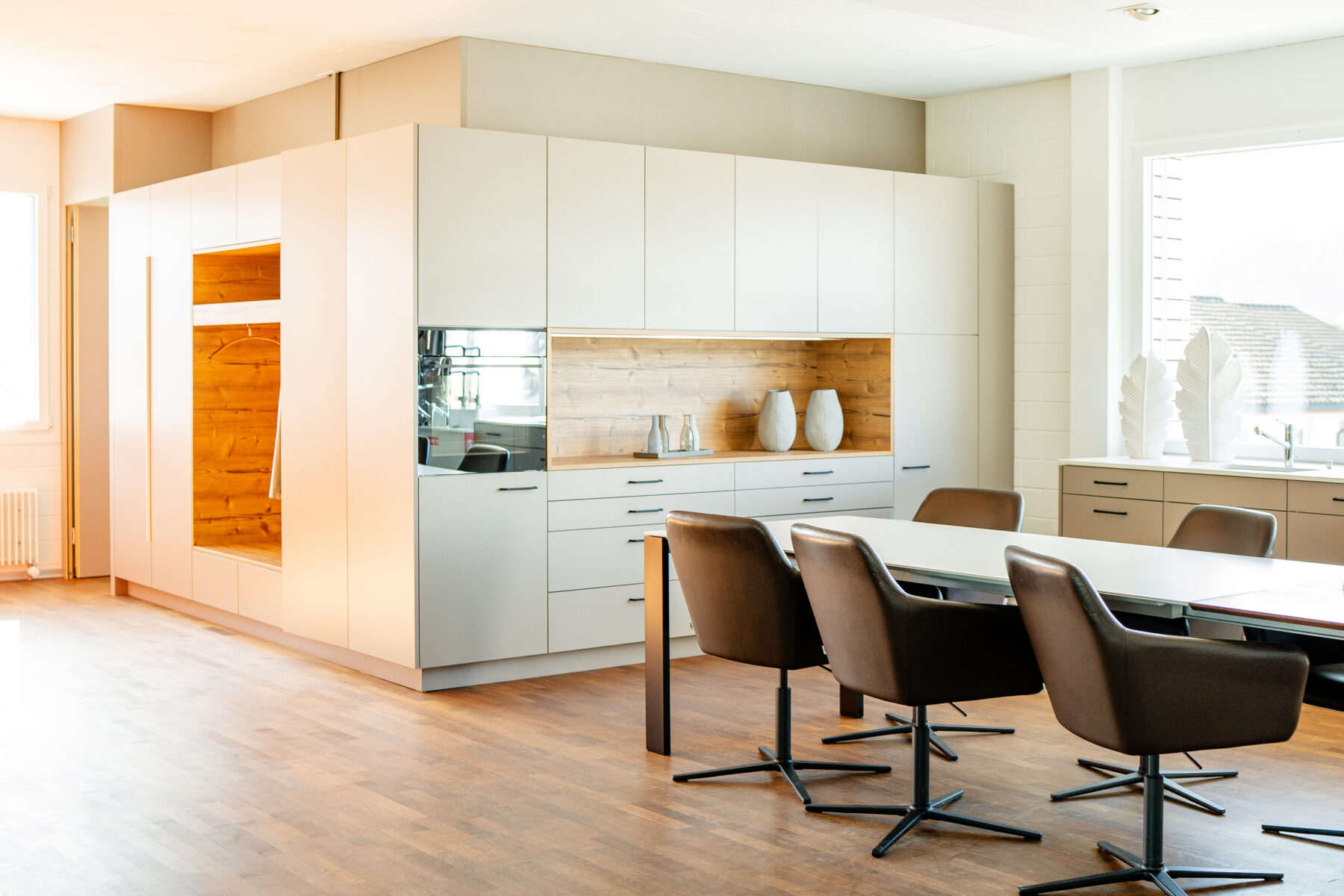 Lassen Sie sich entweder bei uns in den Ausstellungen oder bei Ihnen zuhause beraten. Jede Küche wird ein Unikat. Wir helfen Ihnen, Ihre Vorstellungen mit unserem Angebot zu einem realisierbaren Projekt zu entwickeln. Freuen Sie sich auf einen spannenden Prozess. In unseren Ausstellungen können Sie auch alles anfassen und ausprobieren. Neu bieten wir die Möglichkeit, dass Sie die Küchengeräte vor dem Kaufentscheid in unserer Demoküche austesten können. Profitieren Sie von diesen umfassenden neuen Möglichkeiten. Wir freuen uns auf Sie.